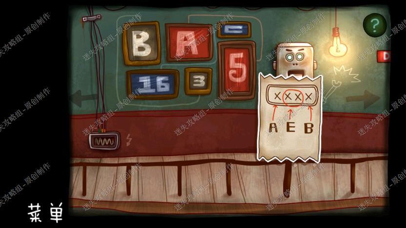 5. 回到大苍蝇那里,把苹果给他,拿到钥匙,我们下楼回到解电线的过道,把钥匙插入,把机器人的头放进去,获得密码AEB。