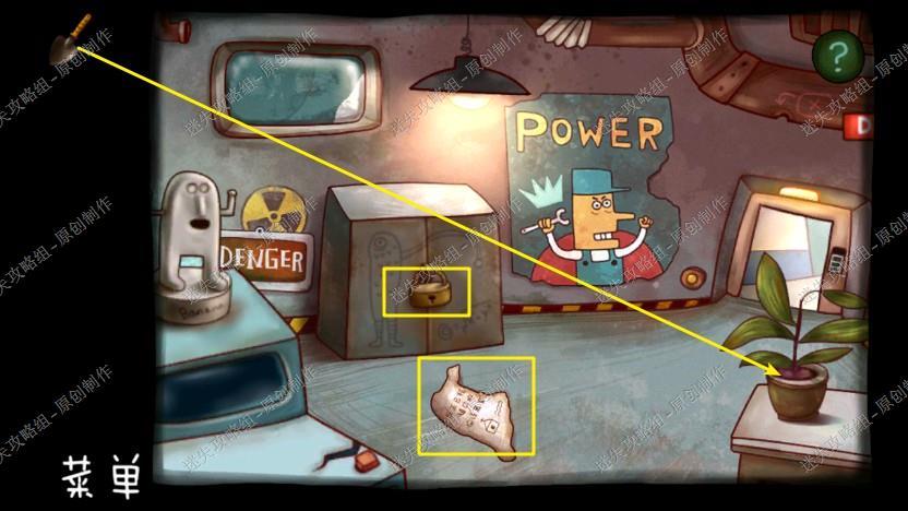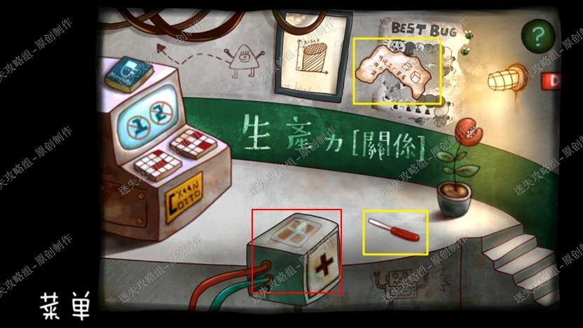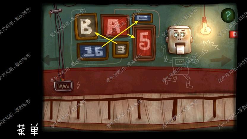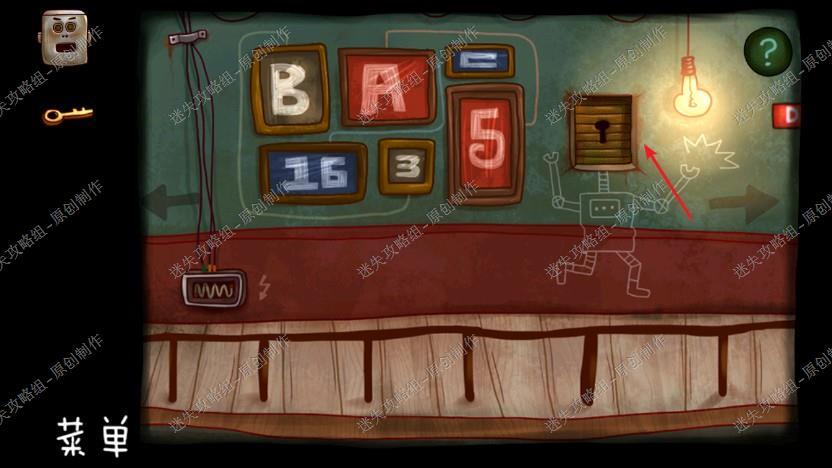16. 回到机器人工坊,我们把地上的螺丝刀,墙上的日记拿走,根据手册里的线索密码,用螺丝刀打开,拿到电池。