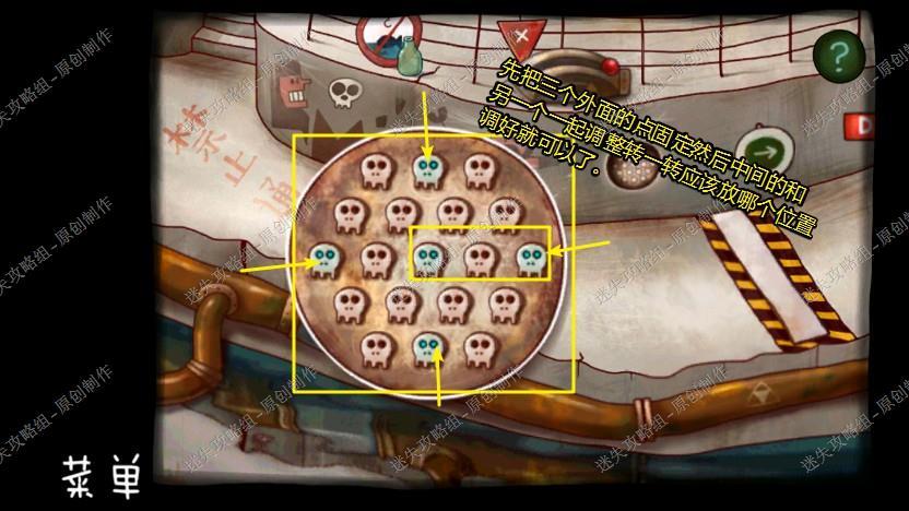 13. 点击桌子上的按钮,开始小游戏,完成游戏后拿到门锁密码(差点暴走死了3次,还行),四个角笑脸中间笑脸,出门回到装阀门的地方。