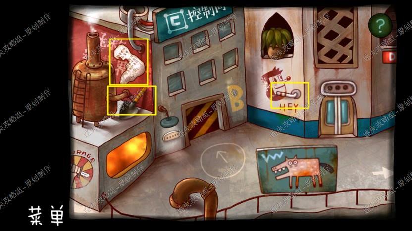 14. 来到阀门处后,把操作杆装入图中位置,完成小游戏(先固定外面三个角,再调整中间和另一个),存档进入下一个地方。