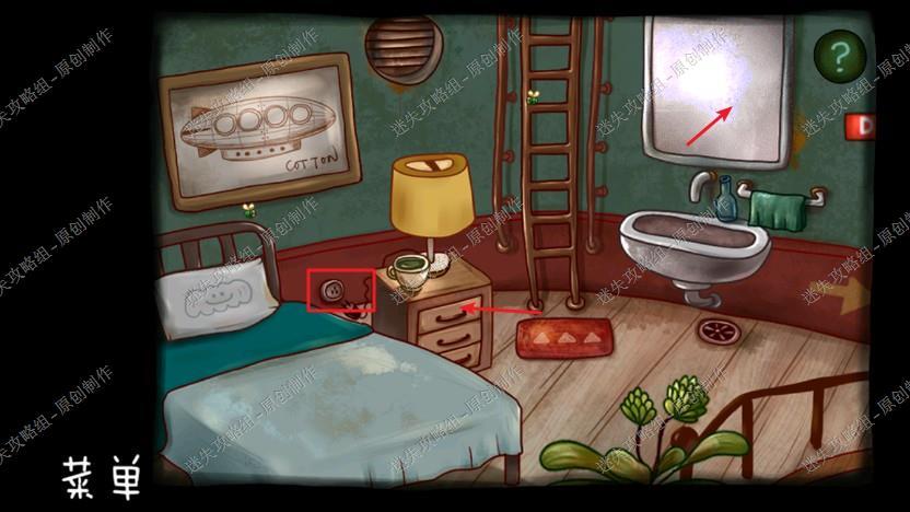 1、我们在自己的房间中醒来,在地上捡起自己的日记,点击一下镜子,看到台灯把台灯后的插头插上,再点击镜子,看到密码210x(x就是抽屉的第一层拉开第一层再看)得到完整密码2105,从镜子中我们看到的倒影所以密码应该是2015(好棒的作者)