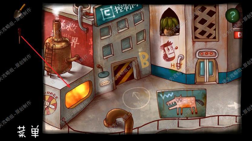 10. 我们点击辣椒人他想要火柴,我们把塔尖拿下来(???)当火柴,回到下面去到公寓外沾点石油,再回到电梯下面左边火炉点燃,回到上面给辣椒人点燃烟斗。