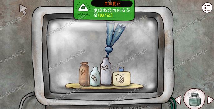 发现海里的鲲:在二周目,原来召唤船的信号机器变成了一个带屏幕像示波器一样的机器,这个场景一直等,就能等到一只鲲。同时,看到第一次以后,再去一次这个场景,再等一次,就能看见鲲身上开了一朵花,这是之后收集的花中的一朵。