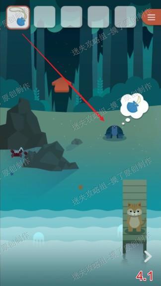 2.点击左下角箭头前往海滩的另一边,点击乌龟获得项链的带子(如图2.1、2.2)。