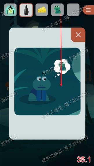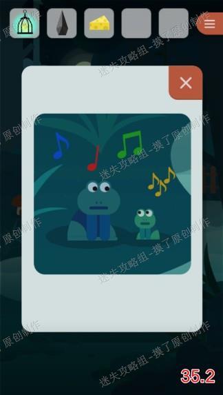 35.把小青蛙送还给池塘边的青蛙,路上会遇见一只绵羊,先不用管,送完青蛙之后两只青蛙会唱歌,记住音符的颜色和样式(如图35.1、35.2)。