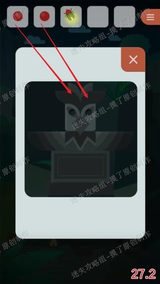 27.前往有石头堵住的山洞的地图,点击右侧雕像,把两个红色的球放在眼睛的位置,会出现四个头像(如图27.1、27.2)。