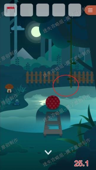25.再前往有青蛙的地图,点击靠近对面栅栏的池塘,用捕虫网捞出沉在水底的红色小球(如图25.1、25.2)。