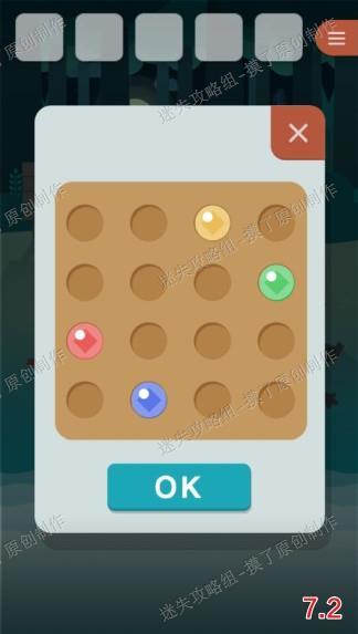 7.把彩色石头放到箱子上,按照猴子右边的花顺序摆好石头(如图7.1、7.2)。
