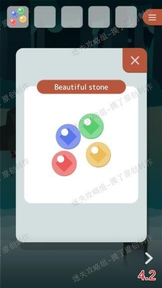 4.将贝壳项链给乌龟,乌龟面前会出现最初贝壳那样的发光点,点击发光点获得彩色的石头(如图4.1、4.2)。