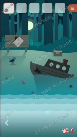 16.返回最初的海滩,点开左上角告示牌,将纸片拼上去(如图16.1、16.2)。