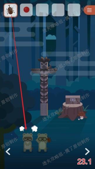 22.返回貉在的地图,点击第一次获取甲虫的树枝,点击罐子对树枝使用,获取另一只甲虫(如图22.1、22.2、22.3)。