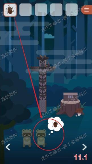 11.把甲虫给貉(如图11.1)(图腾柱地图上长得很像小浣熊的动物,现实中的区别是浣熊的手像人手,貉的手像狗爪子)。