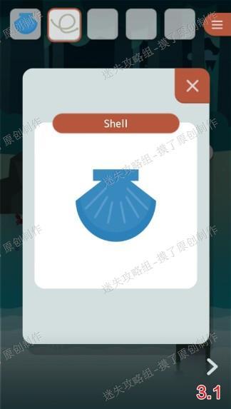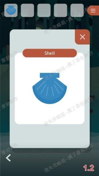 1.点击海滩上的发光点,获得蓝色贝壳(如图1.1、1.2)。