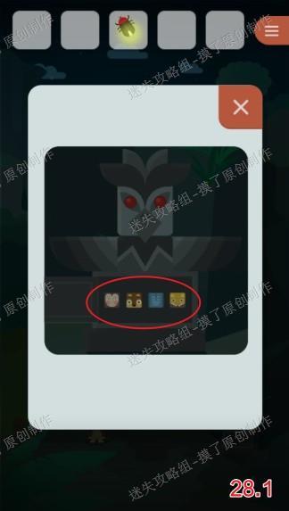 15.前往有熊在的森林,点击瓢虫石碑,按瓢虫花纹样式更改石碑上的瓢虫花纹,打开石碑获得铲子(如图15.1、15.2、15.3)。