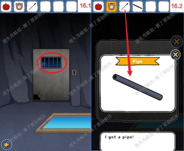 16.返回最开始救甲虫的房间,获得门上的铁管,用箭和铁管合成吹箭(如图16.1、16.2)。
