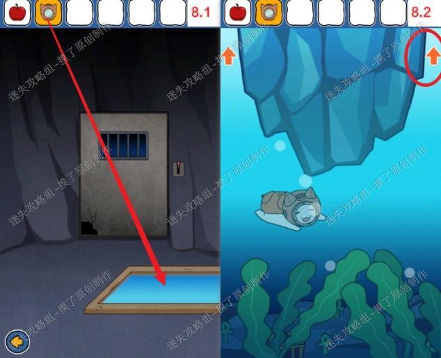 8.点击潜水头盔,再点击水面潜水,点击右侧箭头前往下一层(如图8.1、8.2)。