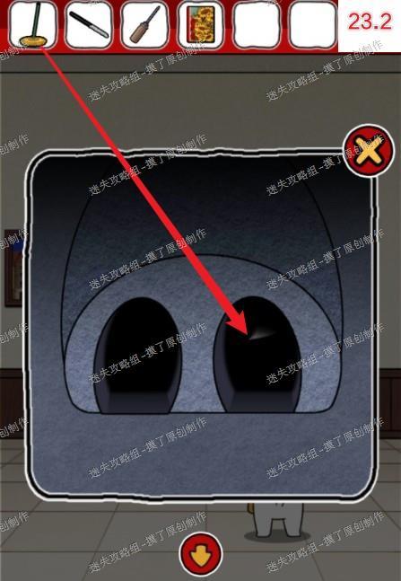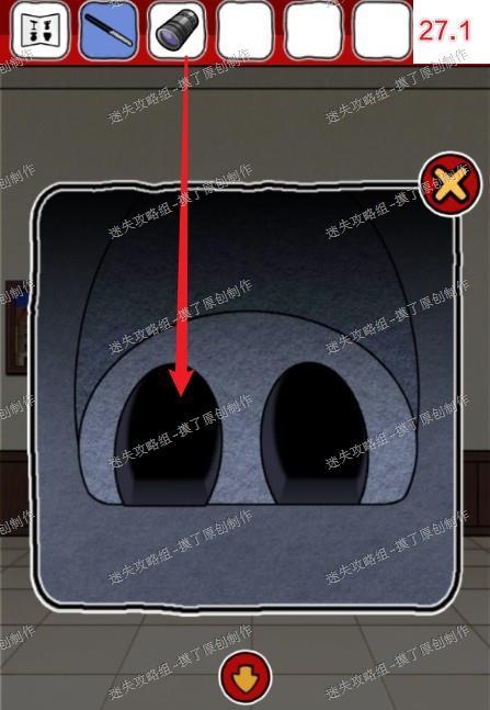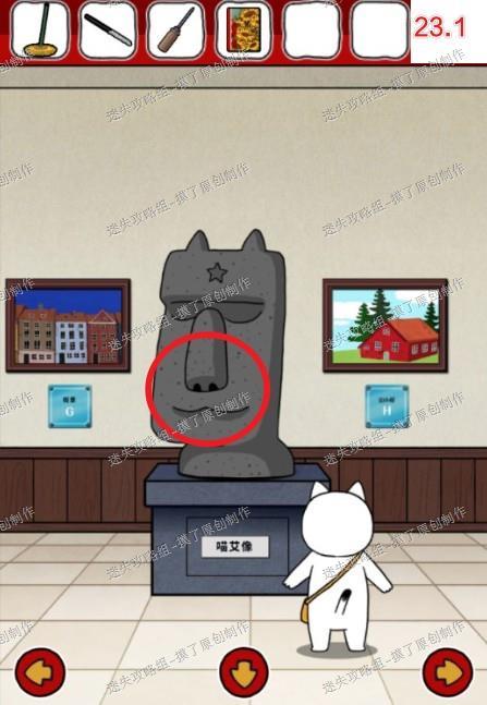 23.前往下一层房间,点击复活节岛石像,用拖把从右边鼻孔获得纸片(如图23.1、23.2)。