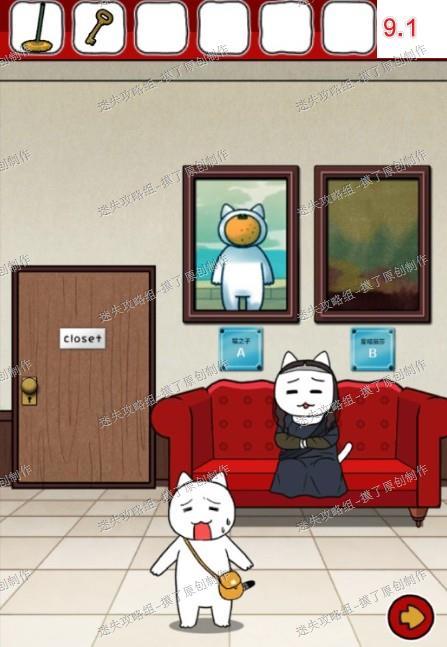 9.向左前往有蒙娜丽莎喵的房间,用钥匙打开写着closet的房间(如图9.1)。