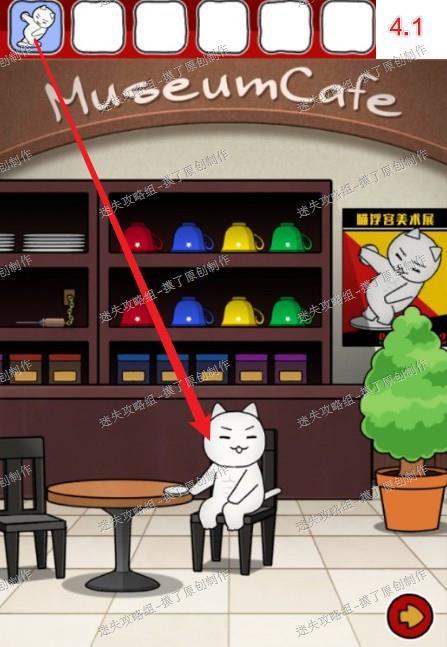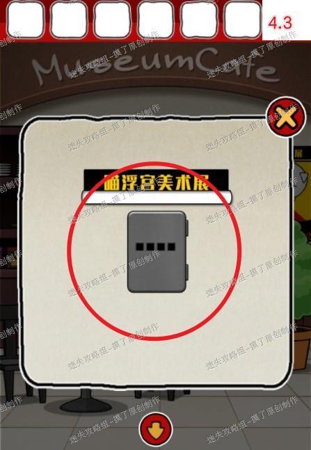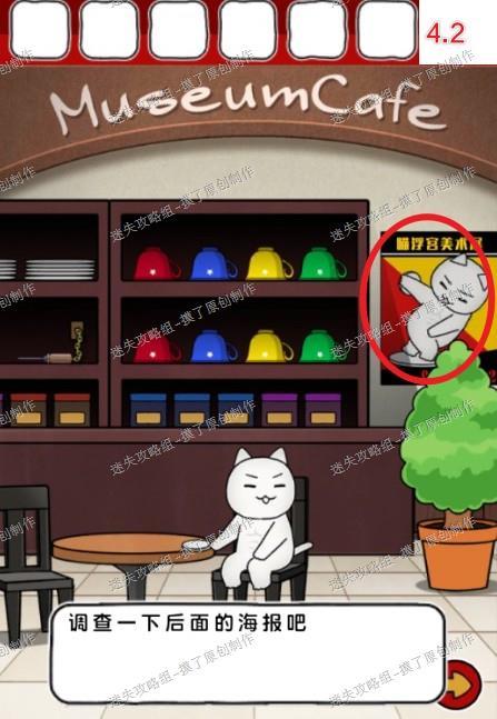 4.把扭蛋大卫喵送给售票处左侧咖啡店的白猫,获得提示查看背后海报,发现输密码处(如图4.1、4.2、4.3)。