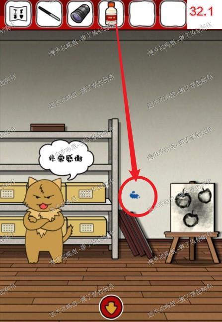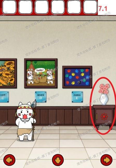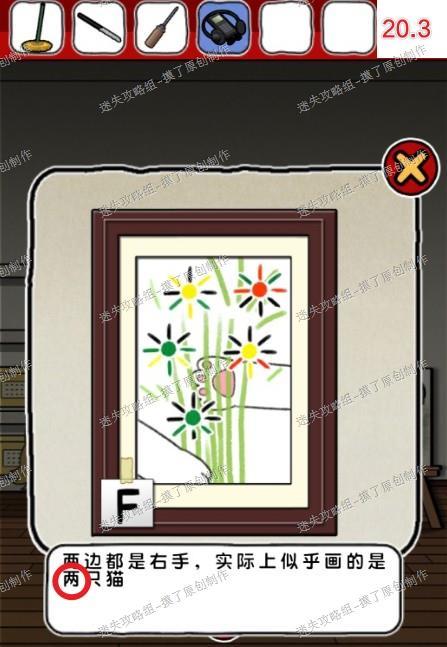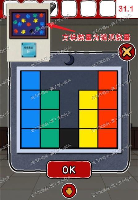 解码提示为刚才猫手遮挡的花,花瓣和花心同色的组合起来即为密码。14.把牛肉干给房间中的猫咪,解救棕猫(如图14.1)。