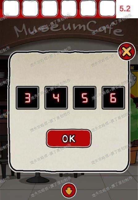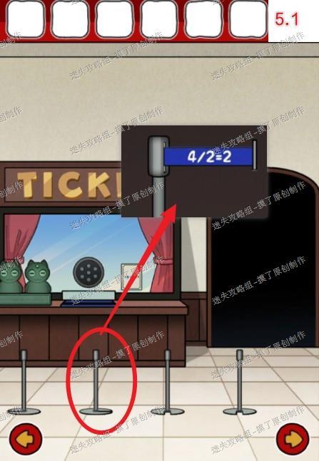 5.返回售票处查看第二个栏杆上侧,获得提示4/2=2,返回海报处点击输入密码3456,开启开关解锁下一层房间(如图5.1、5.2、5.3)。