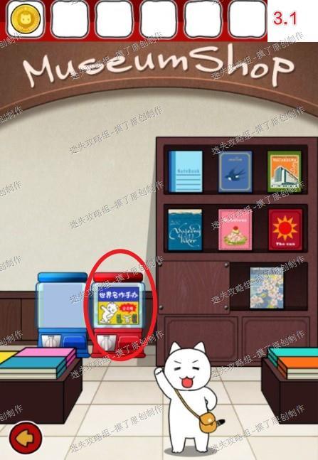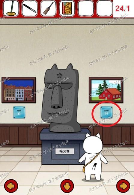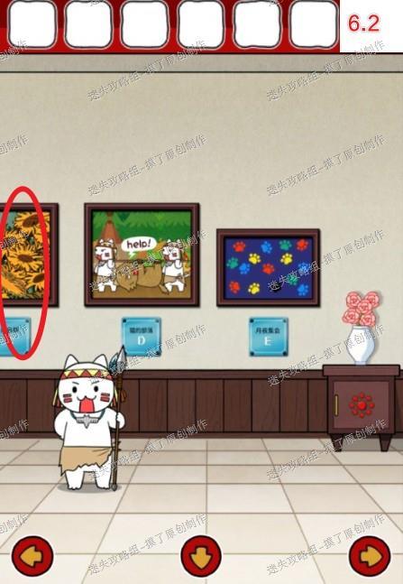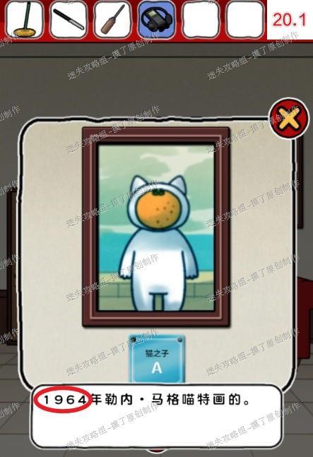 12.点击竖着放的画,翻到最后一张,再多次点击猫手,获得提示(如图12.1、12.2、12.3)。