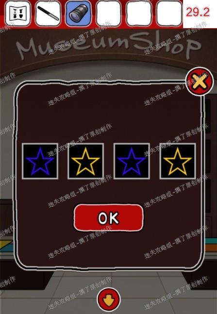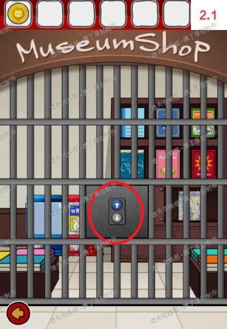 2.点击售票处窗口,获得提示“灰蓝↓灰蓝↑”,前往右侧商店按顺序点击下上下下上上解锁商店(如图2.1、2.2)。
