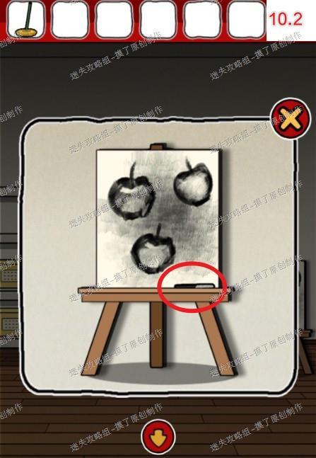 10.点击右侧苹果图画获得画架右下角的碳笔(如图10.1、10.2)。