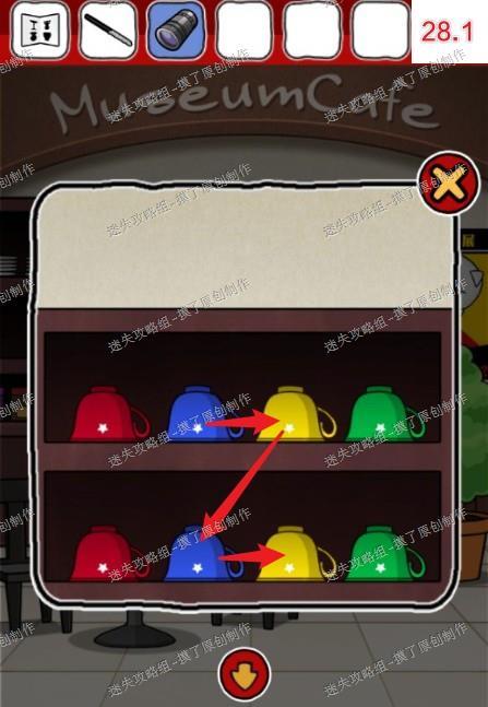 28.返回最初的咖啡店,按照解码方法获取密码为“蓝黄蓝黄”(如图28.1)。
