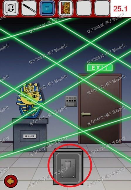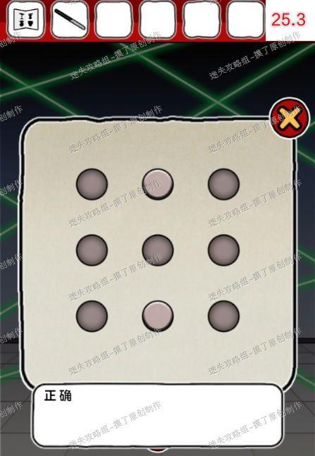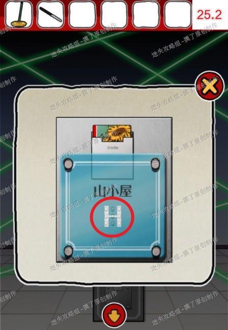 25.前往右侧布满激光的房间,点击中间装置,把向日葵卡片和玻璃板装上去,在按钮处点击连成字母H,解除激光(如图25.1、25.2、25.3)。