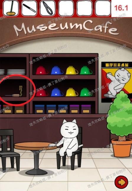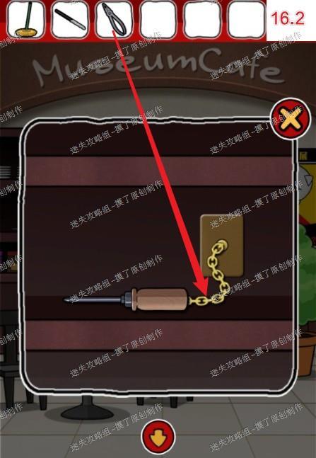 16.返回最初的咖啡馆,对柜子上被锁住的螺丝刀使用老虎钳,获得螺丝刀(如图16.1、16.2)。