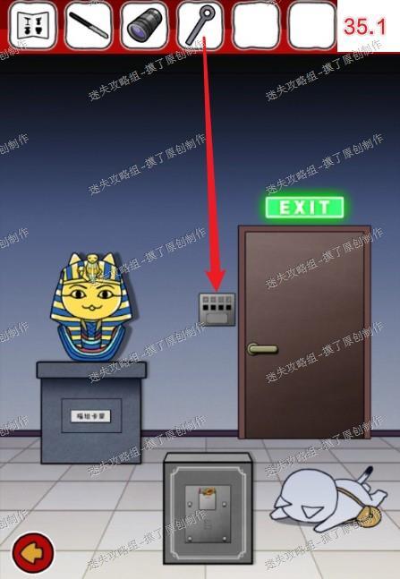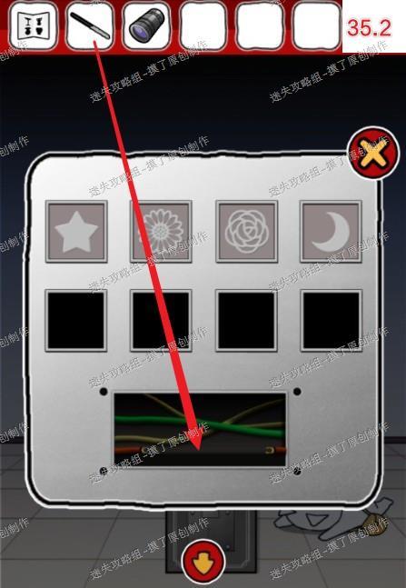 35.用六角扳手打开最右侧写着EXIT门旁的密码箱下侧,用碳笔连结两侧电线(如图35.1、35.2)。