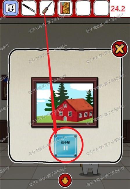 24.同个房间,点击右侧小房子画底下的铭牌,用螺丝刀拆下来,获得玻璃板(如图24.1、24.2)。
