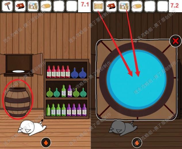 7.点击房间中的水桶,将藏宝图和照片都在水里浸一次(如图7.1、7.2)。