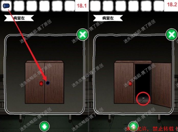 18.在病室左侧的柜子上放上蓝色把手,打开获得钥匙(如图18.1、18.2)。
