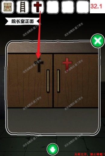 31.前往院长室,点击有十字架的上侧洗手台,使用输血袋,获得另一枚红色十字架(如图31.1)。