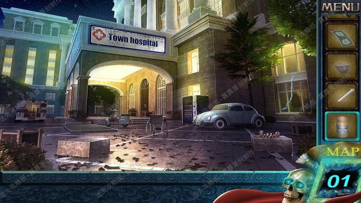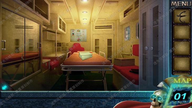 6、获得小物品之后点击救护车放大场景,将小物品放在救护车的门把手上,随即救护车就可以打开进入了。6X1
