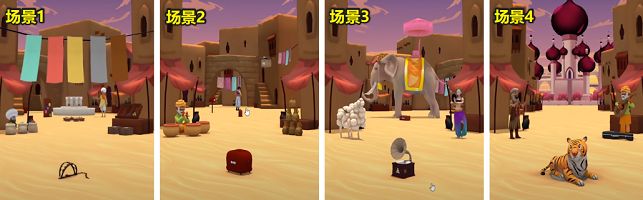 1、乘坐魔毯来到了新的世界里面。先查看一下场景1中心的小游戏。(玩法很简单里面有一个锅子是坏的,之后会打乱位置,之后玩家们需要准确猜出原先那个坏锅子的位置)。为了方便大家过关,已经 每个锅子位置标记出来。成功之后自动获得水管的一截。31.1