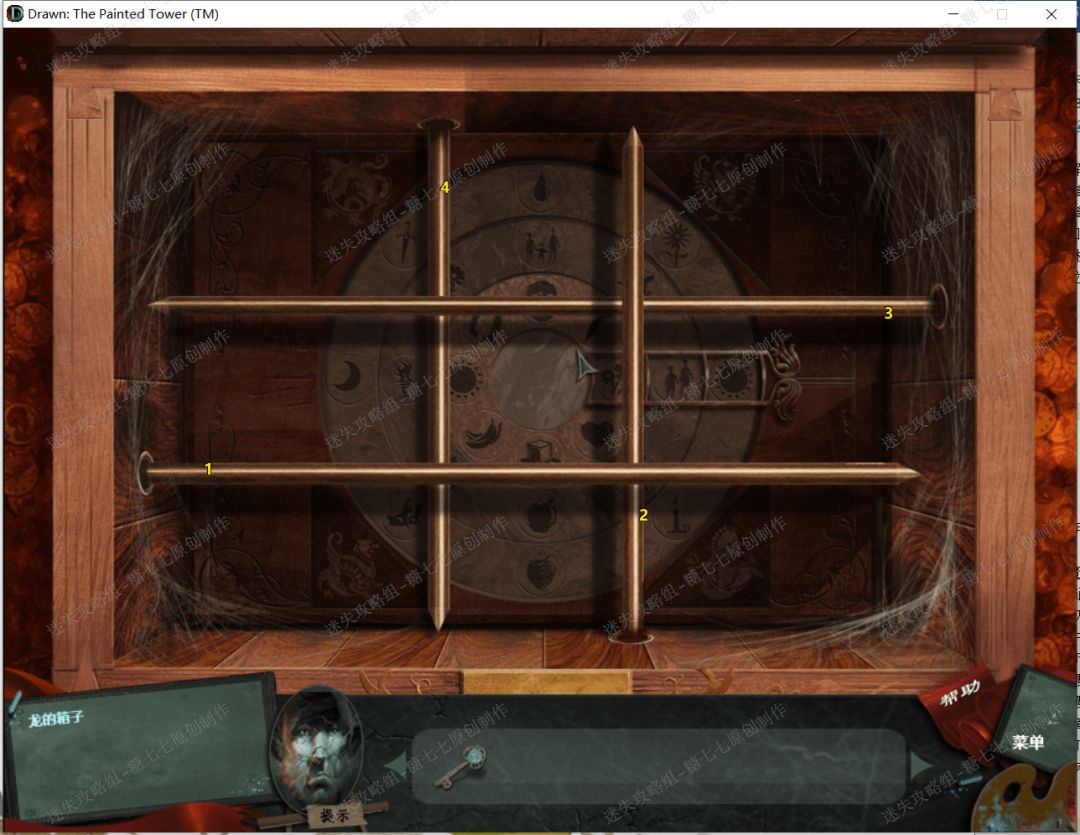 38、 然后用刚拿到的钥匙打开龙身边的箱子,然后解开谜题,如图所示。拉动棍子让他们缩回去就可以。拿到火轮和三颗红宝石。