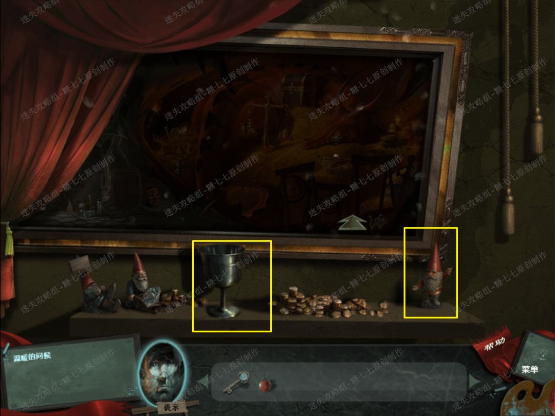 18、 然后查看左边的画,并且拿到画下面的圣餐杯和小矮人。