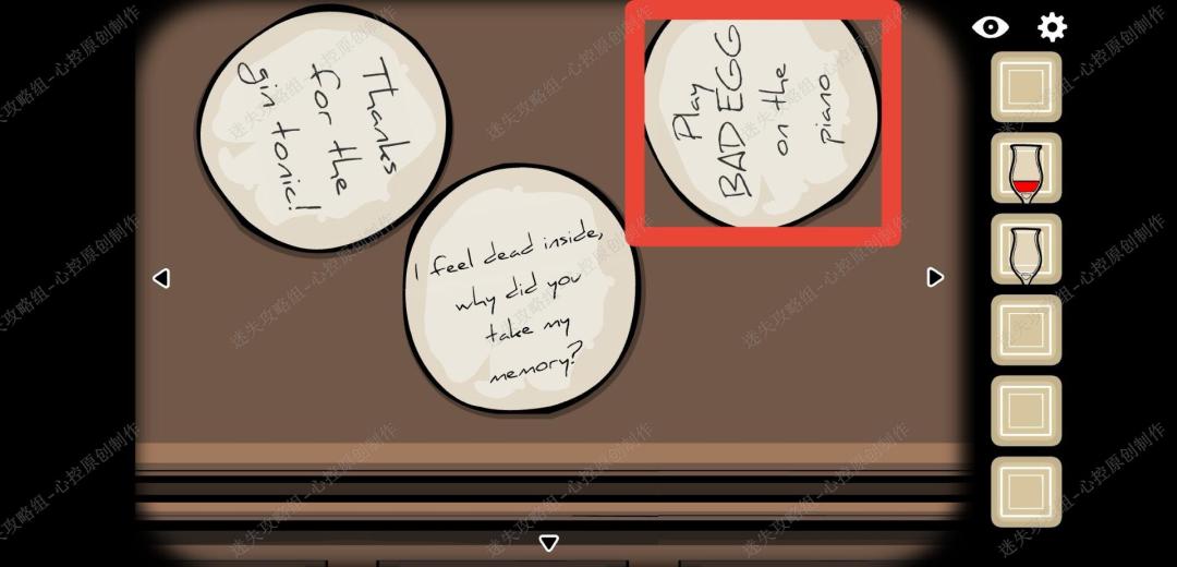 🔹成就八,在男人开枪自杀前,给男人喝下汤琴酒后,等男人离开座位时,他的座位下放着三枚硬币,一枚硬币后面写着bad egg,用得到的bad egg,弹奏钢琴,会出现一只跟着音乐唱歌的鸟,听完后解锁成就。