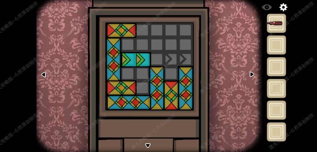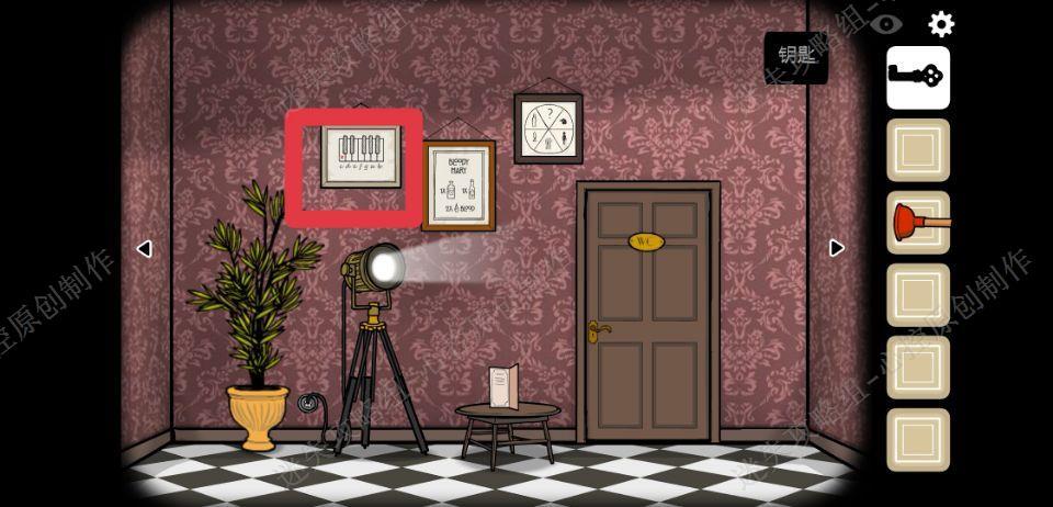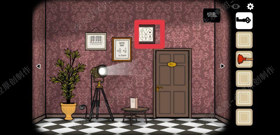 🔹7、向右走,用钥匙打开洗手间的门,点击洗手间的镜子,镜子就会分成五块,正确拼好镜子里的人,镜子就碎掉了,我们就可以得到一个提示,