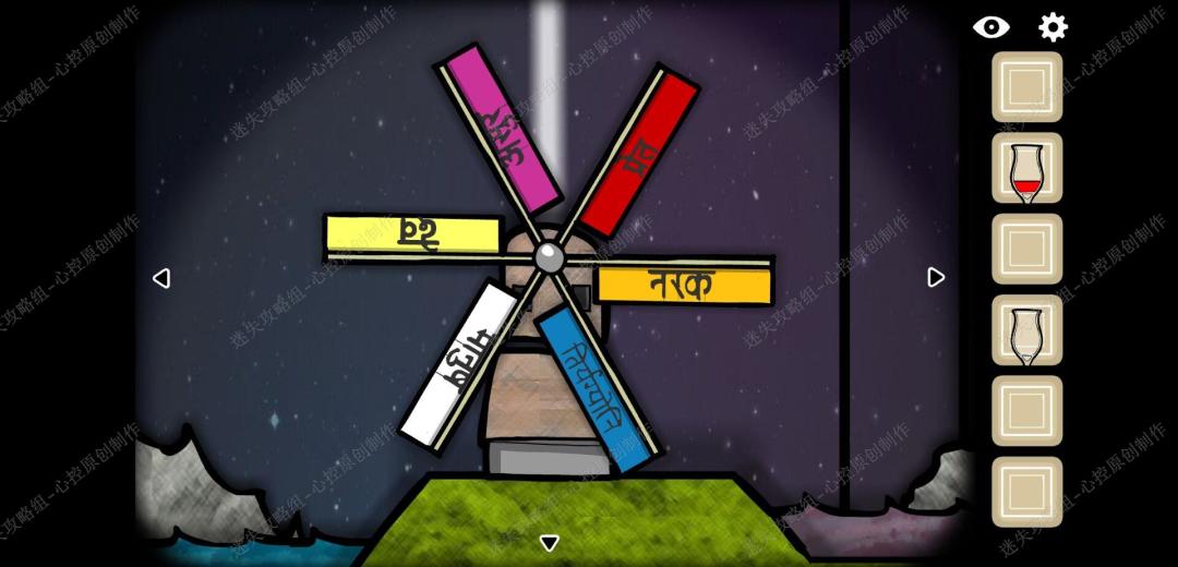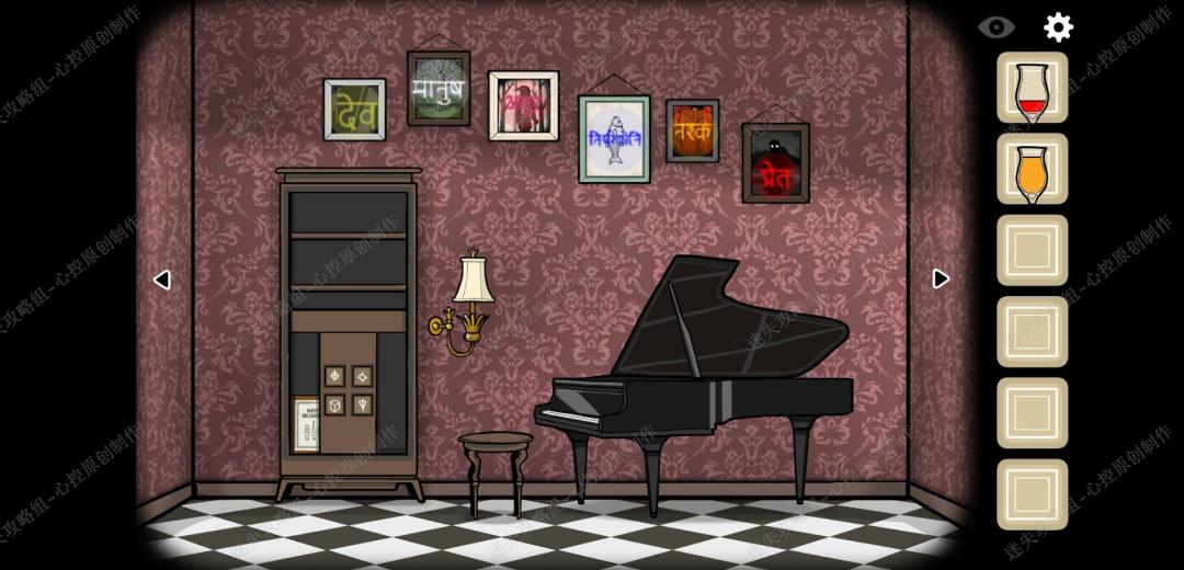 🔹20、第六幕,根据钢琴画面墙上挂画的提示和洗手间三幅画,最右侧画的提示,可以得到风车颜色的排序是,粉红橘蓝白黄,正确排序之后就可以坐上电梯离开了。