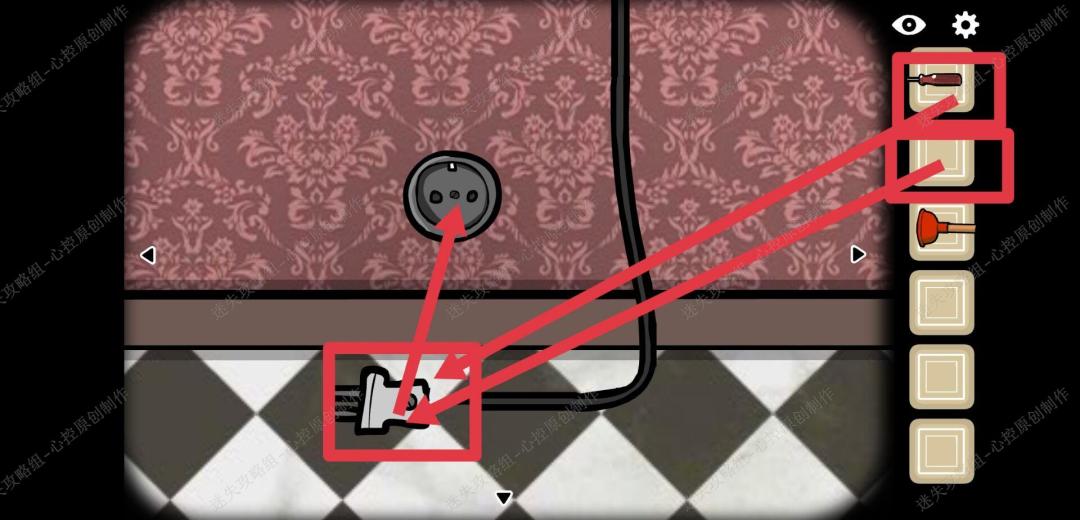 🔹4、画面再往右转,点击盆栽旁边的插座把插头放上去,再用螺丝刀把插头固定住,灯就可以打开了,
