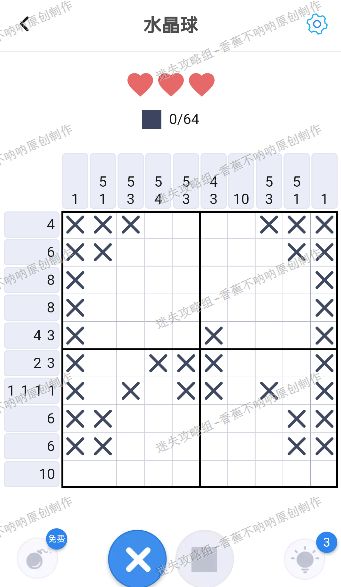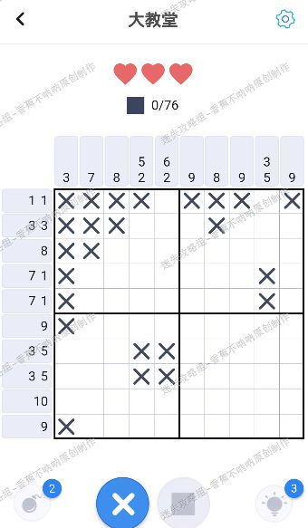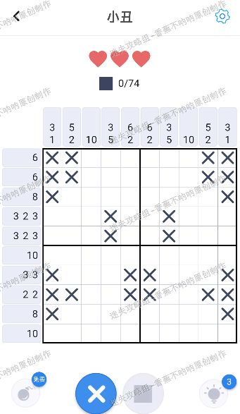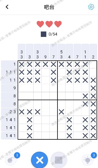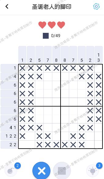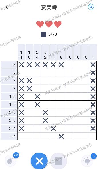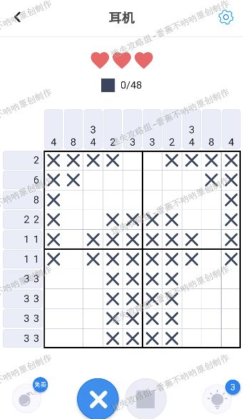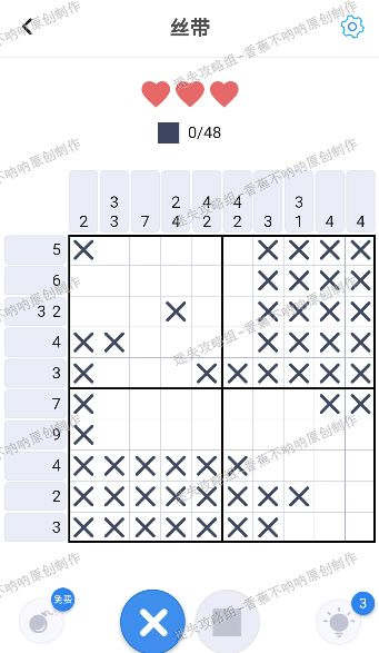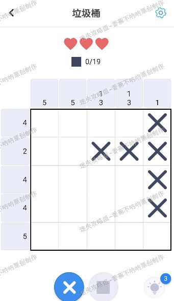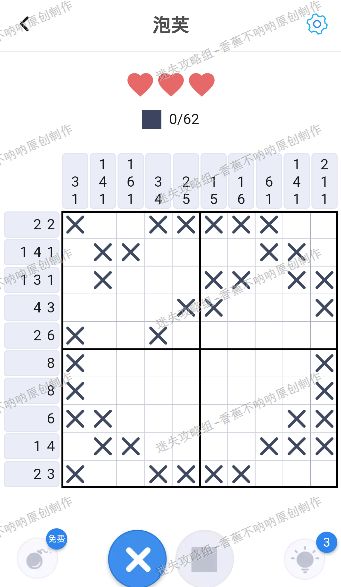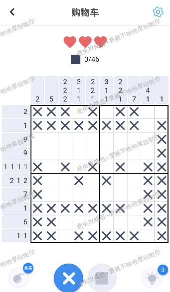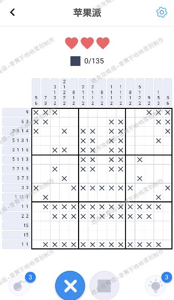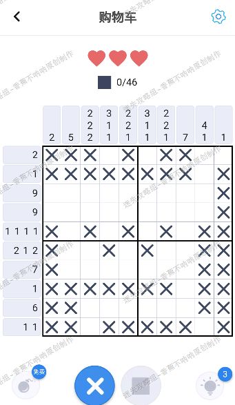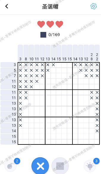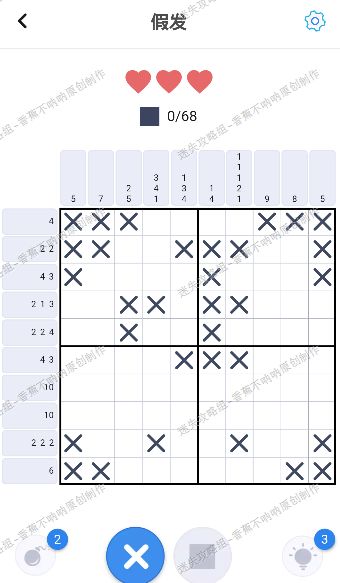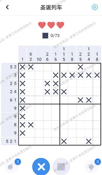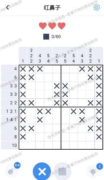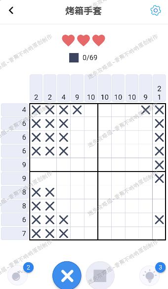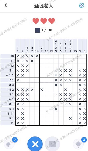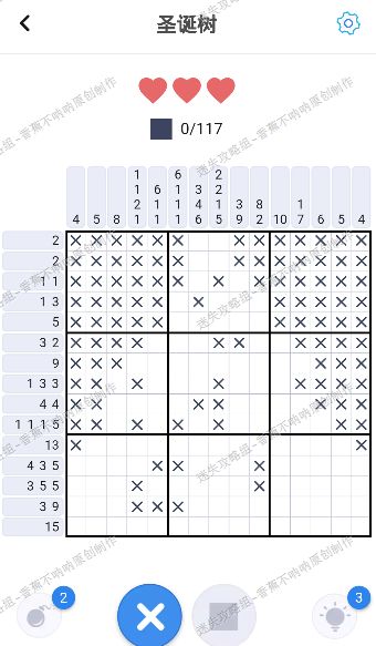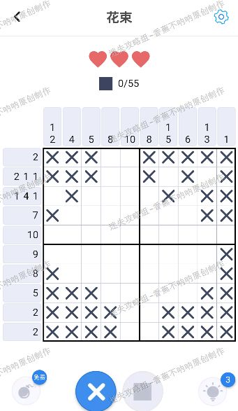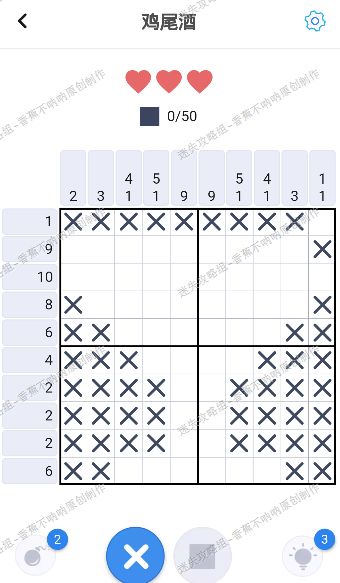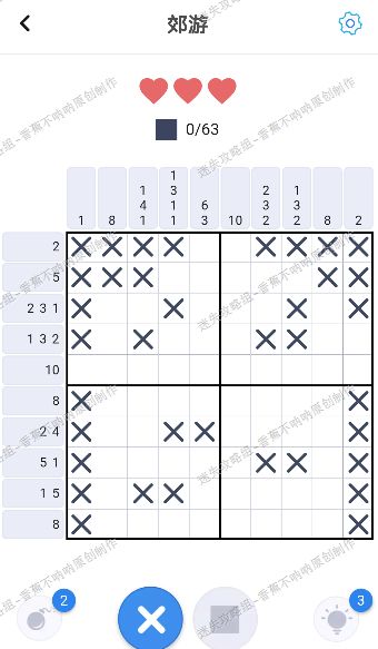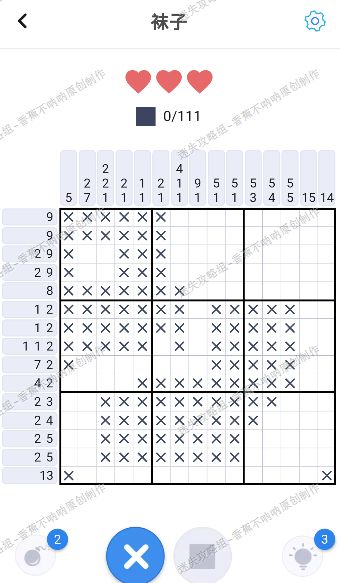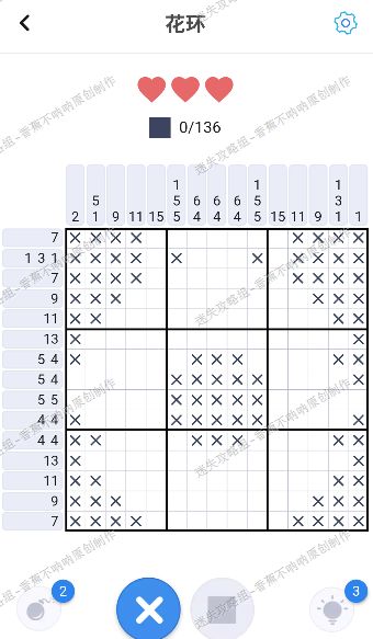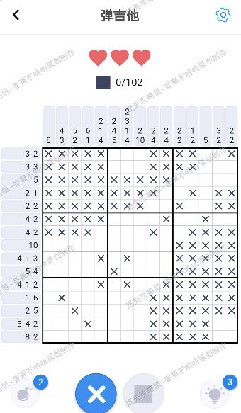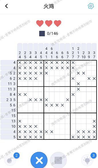 3、在图片的上方将会显示剩下的机会数量(爱心),以及一共需要进行填涂的格子,这样也可以作为一个有利的参考。
