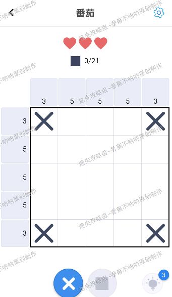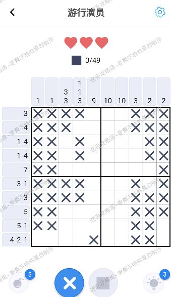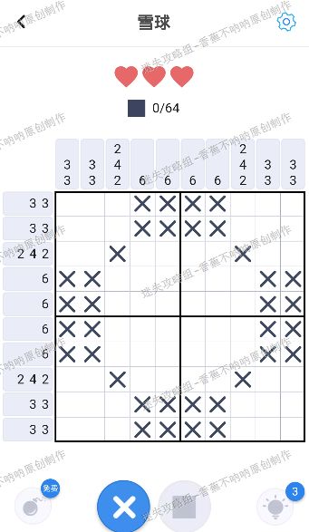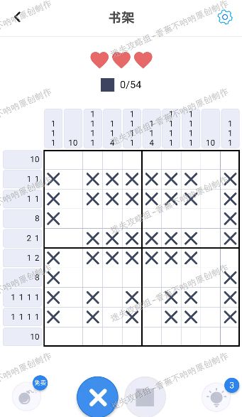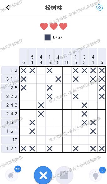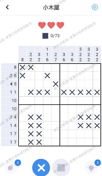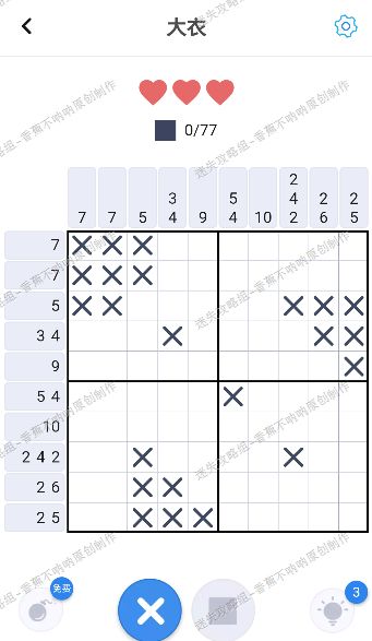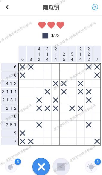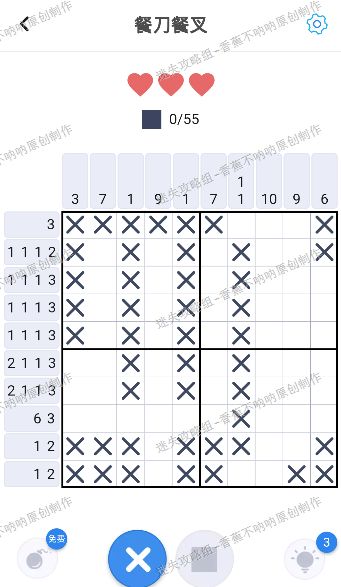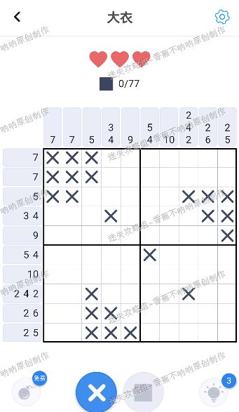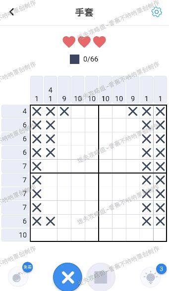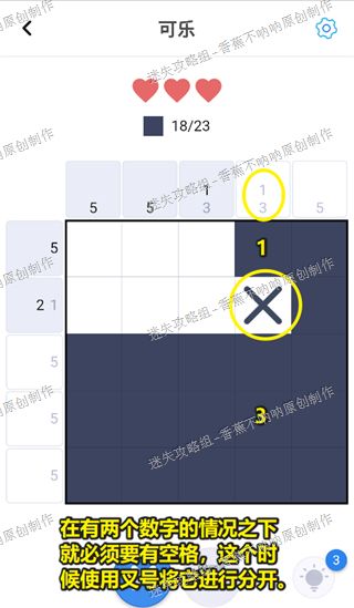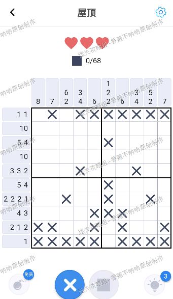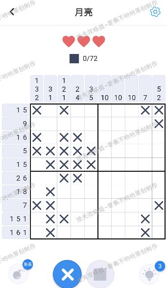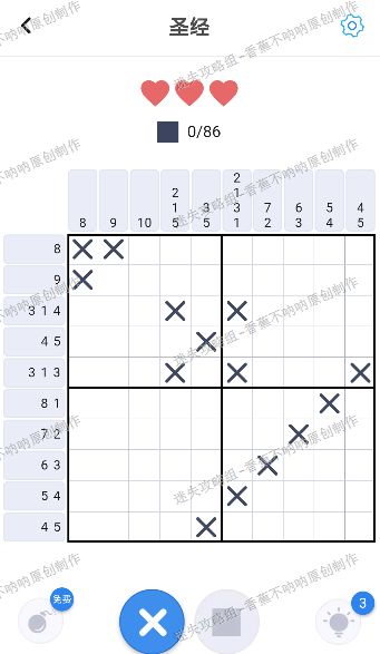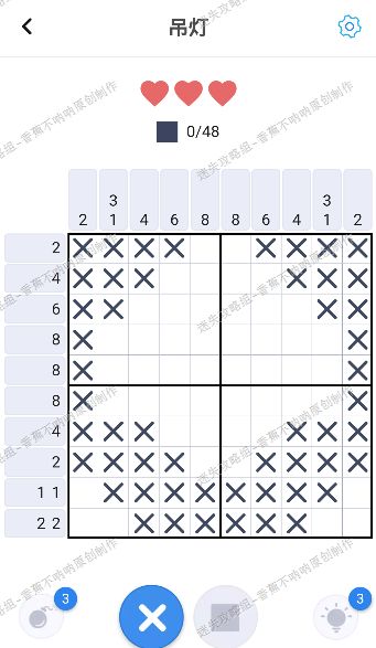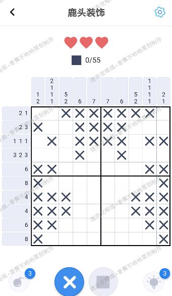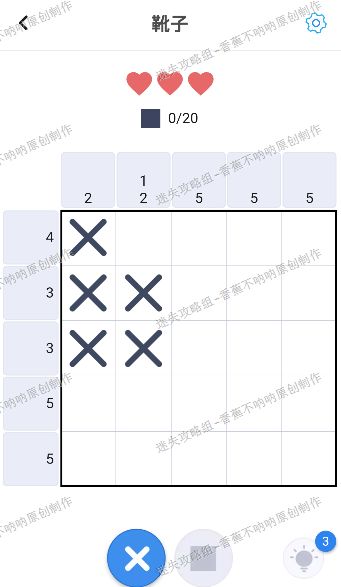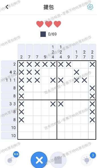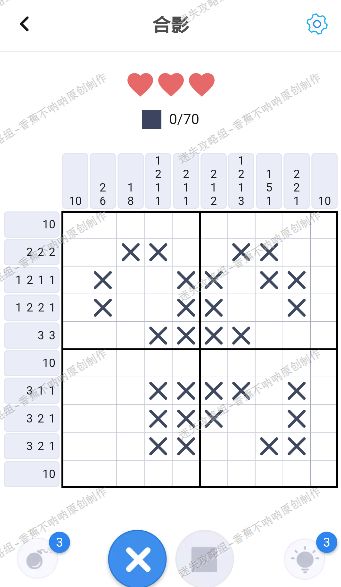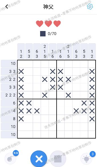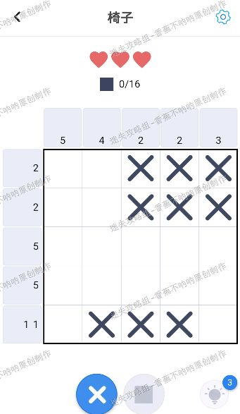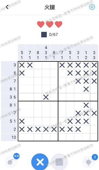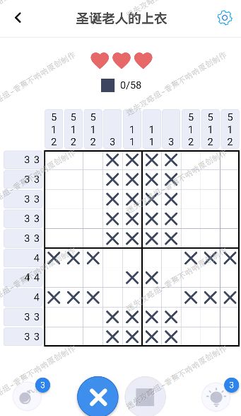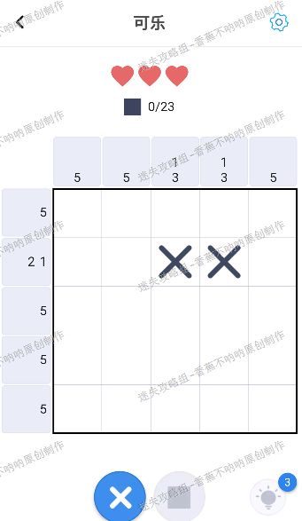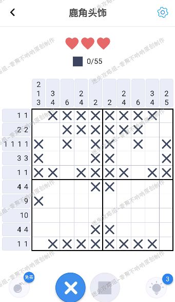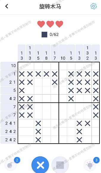 3、在图片的上方将会显示剩下的机会数量(爱心),以及一共需要进行填涂的格子,这样也可以作为一个有利的参考。