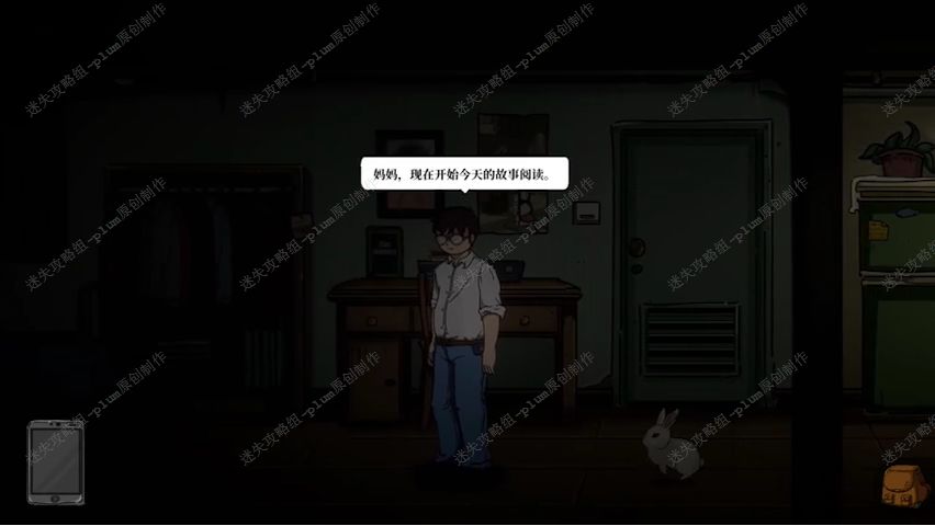 🌹19、出公司后看到白发女鬼在往主角家的方向走,回到家中后地震并且灯泡破碎,点击厕所门左侧桌子提示给妈妈朗读故事。