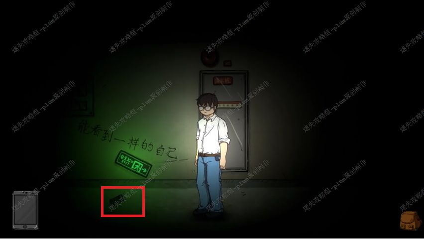 🔹1. 走到经理室门口发现墙上有句“能看到一样的自己提示”,地上获得半张纸条。
