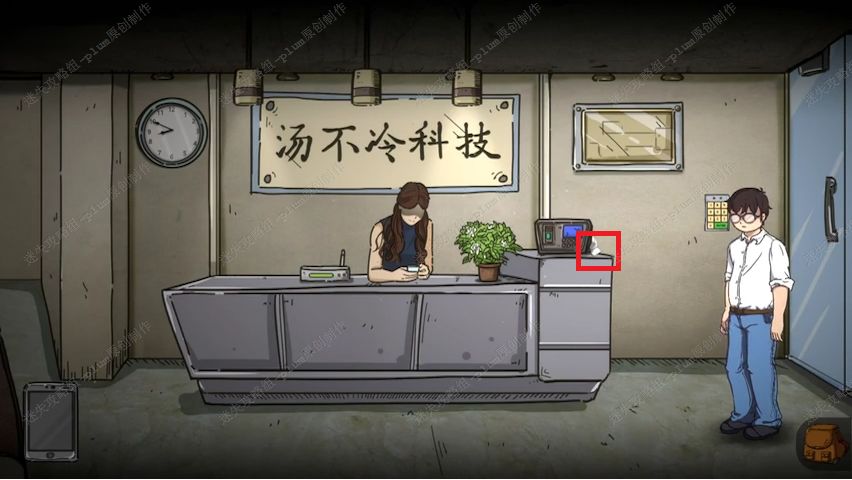 🔹2. 走进厕所,将纸条放在镜子上,获得密码“1038”。输入密码走出公司。