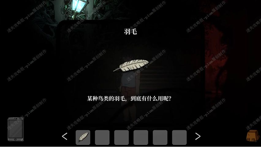 🌹2、向画面右侧走,点击图中的问号,显示鸟窝里有一根羽毛,但现在拿不到。